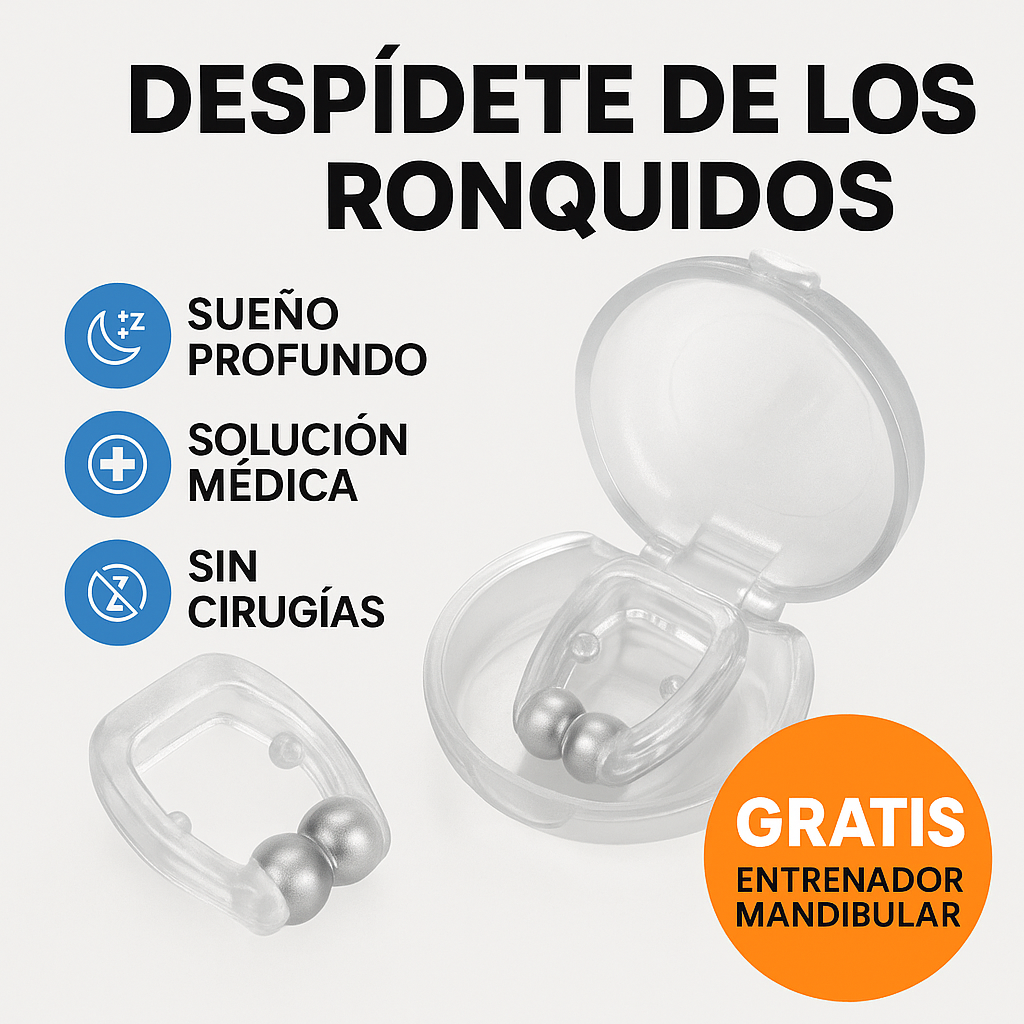 Presentación: Clip nasal + estuche protector + entrenador mandibular GRATIS.